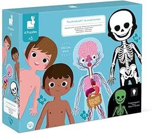Janod - Set van 4 reuzenpuzzels op het menselijk lichaam - 50, 75 en 100 stukjes - educatieve kaarten in 12 talen - Ontdekking van het menselijk lichaam - Vanaf 5 jaar J02681 : Amazon.com.be: Speelgoed