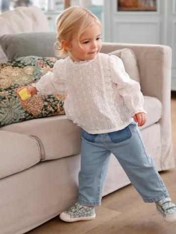 Pour un petit look craquant, ce jean large est pile dans les tendances. Avec sa ceinture en tissu fleuri et ses poches contrastées, ce pantalon renouvelle le vestiaire des filles avec fantaisie.