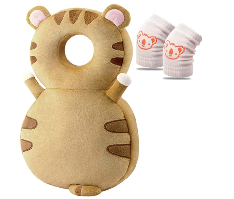 JEJA Coussin de protection de la tête et de sécurité réglable pour enfants de 4 à 24 mois avec genouillères pour bébé, tigre