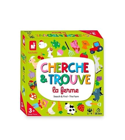 Immersion imminente à la ferme ! Le but du jeu est de trouver tous ensemble des éléments sur les plateaux pour gagner 10 cartes. On choisit le côté blanc ou vert du plateau et on joue avec le côté des cartes de la même couleur. Le plus jeune joueur lance le dé puis il pioche une carte et la montre aux autres joueurs. C'est l'élément qu'ils doivent retrouver sur le plataeau, autant de fois que le chiffre indiqué par le dé. La carte est gagnée si le nombre d'élément à trouver est atteint. Sinon, la carte est perdue. Une...