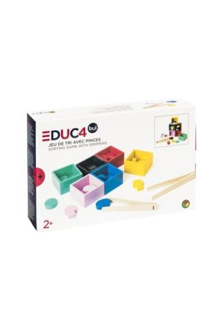 Dans chaque compartiment, votre enfant trouve des champignons, haricots et des jetons de différentes couleurs. Utiliser la pince en bois pour attraper puis trier chaque compartiment par forme ou par couleur !