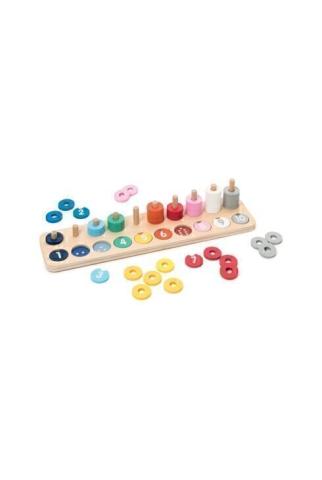 Ce jeu de découverte des couleurs et des chiffres recèle de possibilités et d'apprentissages qui suivent les progrès de votre enfant ! Sans même savoir compter, il commence par manipuler puis empiler les jetons pour stimuler sa motricité fine. Une fois à l'aise, il les empile par couleur et les énumère. A-t-il remarqué qu'il y en avait 10 ? C'est l'occasion rêvée d'apprendre à compter en les empilant par couleur ! La première rangée lui permet d'appréhender différemment les chiffres de 1 à 10 par le dénombrement. Petite astuce du chef : le nombre de points inscrits au fond de la case et la couleur de la pièce le guident pour placer la pièce au bon endroit.
