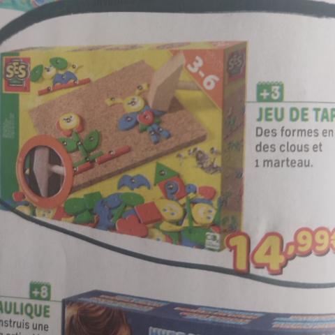 Ce produit est extrait d'une liste de cadeaux (Anniversaire, Noël, ...) déposée sur Kadolog. Kadolog permet de créer des listes de cadeaux (Anniversaire, Noël, ...) en toute liberté. Il est possible d'ajouter toutes vos envies cadeaux et de recevoir les dons directement sur votre compte. Avec les dons reçus, vous êtes alors libre d'aller acheter vos produits (comme ce 'Jeu marteau clous ') où et quand vous le souhaitez.