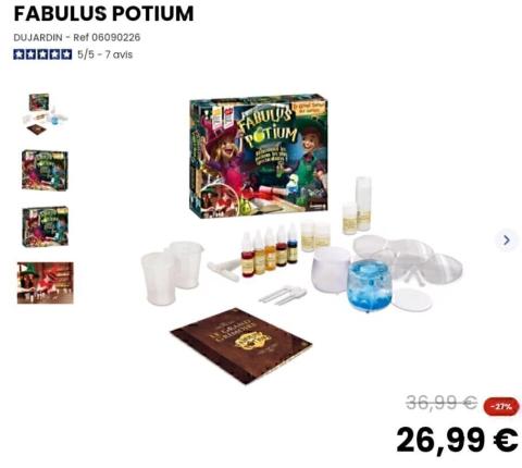 Ce produit est extrait d'une liste de cadeaux (Anniversaire, Noël, ...) déposée sur Kadolog. Kadolog permet de créer des listes de cadeaux (Anniversaire, Noël, ...) en toute liberté. Il est possible d'ajouter toutes vos envies cadeaux et de recevoir les dons directement sur votre compte. Avec les dons reçus, vous êtes alors libre d'aller acheter vos produits (comme ce 'Jeu potion magique ') où et quand vous le souhaitez.