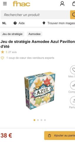 Ce produit est extrait d'une liste de cadeaux (Anniversaire, Noël, ...) déposée sur Kadolog. Kadolog permet de créer des listes de cadeaux (Anniversaire, Noël, ...) en toute liberté. Il est possible d'ajouter toutes vos envies cadeaux et de recevoir les dons directement sur votre compte. Avec les dons reçus, vous êtes alors libre d'aller acheter vos produits (comme ce 'Jeu société AZUL pavillon d’été ') où et quand vous le souhaitez.