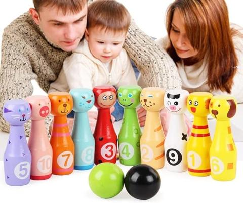 WSNDM Jeux De Quilles 10 Animaux Faces Quilles Et 3 Balle, Jeu De Quilles En Bois Pour Enfants, Différents Motifs Animaux Et Chiffres, Jeux Intérieurs Et Extérieurs Enfant : Amazon.com.be: Jouets