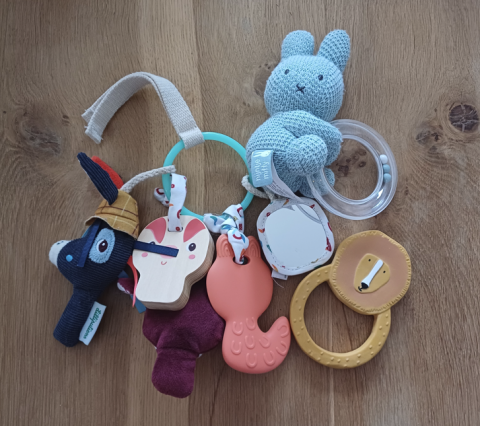 Ce produit est extrait d'une liste de naissance déposée sur Kadolog. Kadolog permet de créer des listes de naissance en toute liberté. Il est possible d'ajouter toutes vos envies cadeaux et de recevoir les dons directement sur votre compte. Avec les dons reçus, vous êtes alors libre d'aller acheter vos produits (comme ce 'Jeux d'éveil et anneau de dentition - 2ème main ') où et quand vous le souhaitez.