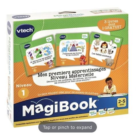 Ce produit est extrait d'une liste de cadeaux (Anniversaire, Noël, ...) déposée sur Kadolog. Kadolog permet de créer des listes de cadeaux (Anniversaire, Noël, ...) en toute liberté. Il est possible d'ajouter toutes vos envies cadeaux et de recevoir les dons directement sur votre compte. Avec les dons reçus, vous êtes alors libre d'aller acheter vos produits (comme ce 'Jeux Magibook dés 2 ans ') où et quand vous le souhaitez.