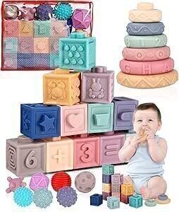 Montessori (25 pièces) pour Enfants 6 Mois et Plus, Cube Balle Sensoriels Souples a Empiler, Anneaux d'empilage, Jeux Eveil, Jouet de Bain et Dentition pour 6-12 Mois, Jouet Bebe 6 Mois : Amazon.fr: Jeux et Jouets