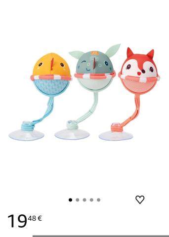 Ce produit est extrait d'une liste de naissance déposée sur Kadolog. Kadolog permet de créer des listes de naissance en toute liberté. Il est possible d'ajouter toutes vos envies cadeaux et de recevoir les dons directement sur votre compte. Avec les dons reçus, vous êtes alors libre d'aller acheter vos produits (comme ce 'Jeux ventouse bain ') où et quand vous le souhaitez.
