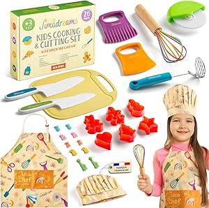 Jimadreams® Kit Couteau Cuisine Enfant Montessori avec Tablier et Toque de Petit Chef - Kit Patisserie & Découpe, Set Couteaux Sécurisés et Ustensiles de Cuisine pour Enfants, Coffret Cadeau dès 3 Ans : Amazon.com.be: Cuisine et maison