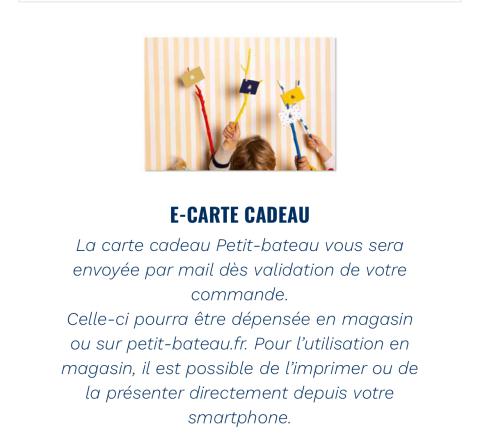 en toute liberté. Il est possible d'ajouter toutes vos envies cadeaux et de recevoir les dons directement sur votre compte. Avec les dons reçus, vous êtes alors libre d'aller acheter vos produits (comme ce 'J'offre une e-carte cadeau Petit Bateau