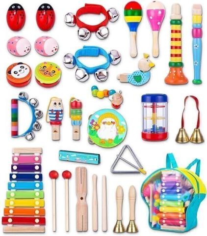 JOFLVA Instrument De Musique Enfant, 32 PCS Instrument De Musique, Ensemble De Jouets Musicaux Bois, Instruments De Musique Jouets De Percussions Enfants Set, Jouet Musical en Bois pour Enfant 3 Ans. : Amazon.com.be: Jouets