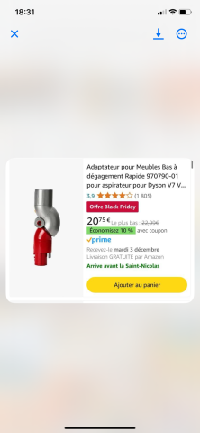 Accessoire dyson (pour aspirer en dessous du lit et en dessous des meubles)