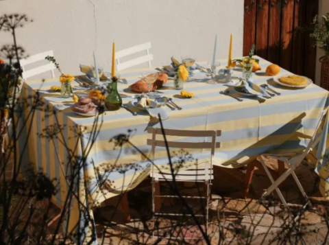 en toute liberté. Il est possible d'ajouter toutes vos envies cadeaux et de recevoir les dons directement sur votre compte. Avec les dons reçus, vous êtes alors libre d'aller acheter vos produits (comme ce 'Joséphine Sky - nappe et 6 serviettes assorties