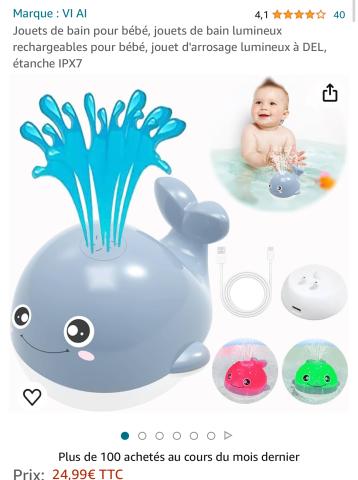 en toute liberté. Il est possible d'ajouter toutes vos envies cadeaux et de recevoir les dons directement sur votre compte. Avec les dons reçus, vous êtes alors libre d'aller acheter vos produits (comme ce 'Jouet de bain baleine