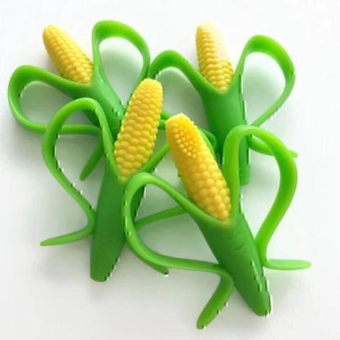 **Les petites soies au bout de l'épi de maïs peuvent être sectionnées si l'enfant les gruge avec ses dents. Ce jouet est conçu pour soulager les gencives des bébés qui sont en train de percer leurs premières dents. Dans l'éventualité où bébé avale des petits morceaux de silicone, ceux-ci sont sans danger pour la santé.
