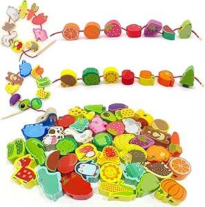 Jouet éducatif en bois - 42 pièces - Pour fruits et légumes - Perles en bois - Jouet éducatif Montessori - Cadeau éducatif pour enfants de 3 à 5 ans : Amazon.com.be: Jouets