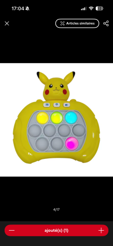 Ce produit est extrait d'une liste de cadeaux (Anniversaire, Noël, ...) déposée sur Kadolog. Kadolog permet de créer des listes de cadeaux (Anniversaire, Noël, ...) en toute liberté. Il est possible d'ajouter toutes vos envies cadeaux et de recevoir les dons directement sur votre compte. Avec les dons reçus, vous êtes alors libre d'aller acheter vos produits (comme ce 'Jouet électronique anti stress Pikachu ') où et quand vous le souhaitez.