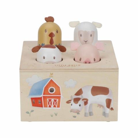 Avec le jouet pop-up sonore Little Farm, les animaux de la ferme jouent à cache-cache ! En appuyant doucement sur les personnages, les enfants déclenchent leur apparition accompagnée de sons d’animaux réalistes : meuglement, bêlement, grognement et caquètement. Ce jouet en bois robuste, dès 12 mois, stimule la coordination œil-main, la reconnaissance des sons et la motricité fine dans un univers tendre et coloré.