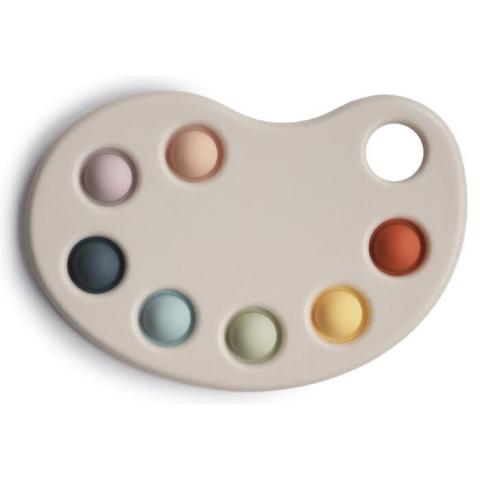 Jouet à presser Mushie pour occuper les petites mains de bébé lors des premiers mois. Peut-être deviendra-t-elle une artiste ?