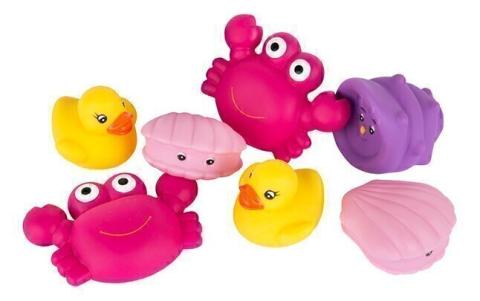 Ce set se compose de 7 animaux marins colorés. 100 % hermétiques, ils ne présentent aucun risque de moisissure et peuvent être mordillés en toute sécurité.