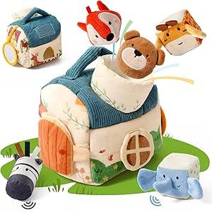 Jouets pour Enfants 4-18 Mois, Montessori Maison Ferme Sensorielle avec 5 Animaux, Moteur, Hochets, Jeux Éducatifs avec Effets Froutants, Cadeau pour Garçons et Filles