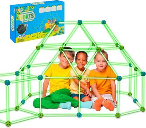 Joya Creative 130 pièces Construisez votre propre Fort - Jouets de construction Glow dans le noir - Convient pour l'intérieur et l'extérieur. Libérez...