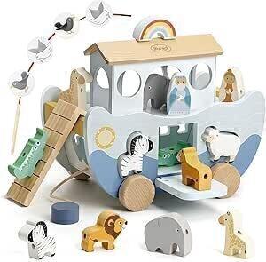 Joyreal Arche de Noé - Cadeau Baptême Garcon Fille Enfant, Jeux Montessori Enfants 1 2 3 Ans, Jouet en Bois Bebe avec Animaux de la Ferme : Amazon.fr: Jeux et Jouets