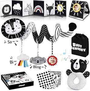 Joyreal Jouet pour poussette - Noir et blanc - Livre en tissu - Livre de contraste pour bébé - Cartes contrastées - Jouet sensoriel pour nouveau-né : Amazon.com.be: Jouets