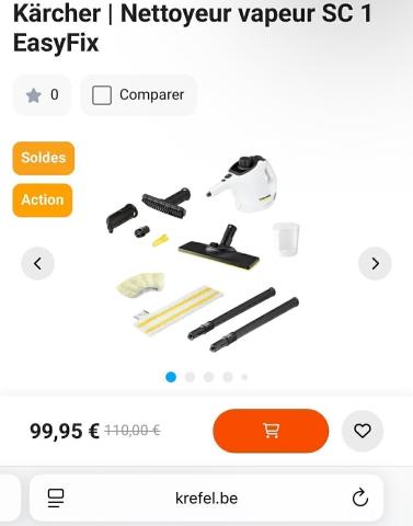 DescriptionLe balai vapeur 2 en 1 compact Kärcher SC 1 EasyFix (avec kit de nettoyage des sols) peut être utilisé dans toute la maison et nettoie les surfaces sans aucun produit chimique. Le nettoyage en profondeur avec le nettoyeur vapeur Kärcher élimine jusquâà 99,999 % des virus* et 99,99 % de toutes les bactéries domestiques** présents sur les surfaces dures courantes de la maison. Avec ses dimensions compactes, lâappareil est prédestiné à un nettoyage dâappoint rapide et efficace. Il peut ensuite être rangé directement sur le lieu dâutilisation avec un encombrement minimal. Robinetteries, carrelage, plaques de cuisson, hotte, voire même les moindres interstices et recoins : la puissante vapeur et la vaste gamme dâaccessoires assurent une propreté impeccable. Grâce au set de nettoyage des sols EasyFix, le nettoyeur vapeur à main très pratique sâadapte facilement au nettoyage des sols. Les salissures tenaces et les dépôts de graisse sont éliminés en un tour de main.