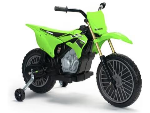 Kawasaki Children's Electric Motorcycle for Ages 3 to 6 Years with 12 V Battery + Accelerator Pedal + Automatic Brake + Stabilising Wheels + Speed 6 km/h + Green INJUSA : Amazon.com.be: Toys