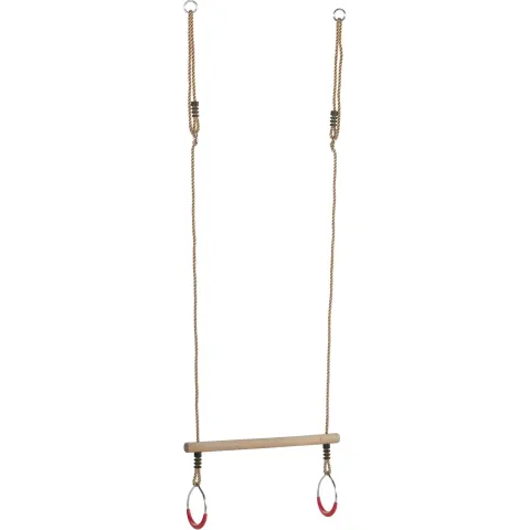 Mais ce sont aussi des balançoires de jardin idéales si vous aimez la gymnastique. Avec cette balançoire trapèze, vous pourrez réaliser toutes vos prouesses acrobatiques. Cette balançoire trapèze est fabriquée en bois dur. Le bois dur a été traité avec des sels inorganiques, ce qui