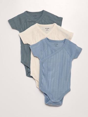 Kiabi - Lot de 3 bodies côtelés En coton Forme croisée Manches courtes Evolutif grâce à la double rangée de pressions Couleur unie