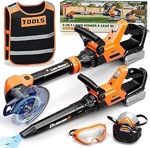 KidBloom 2 in 1 Outils Enfant avec Gilet Porte Outils, Tondeuse Enfants & Souffleur Feuille avec Effets Sonores Réalistes, Jouet Enfant 3 Ans : Amazon.fr: Jeux et Jouets