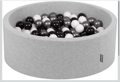 KiddyMoon Ball pool 90 x 30 cm / 200 balls ∅ 7 cm ball pool with coloured balls for babies children round light grey: white/black/silver : Amazon.com.be: Toys