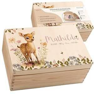 KIDSMOOD - Personalisierte Erinnerungsbox Baby, Holzkiste mit Deckel, Erinnerungskiste als Geschenkidee zur Geburt oder zum Geburtstag für Mädchen und Jungen, Baby-Box mit Namen : Amazon.de: Baby