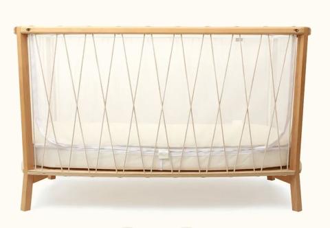 The KIMI is an evolving baby bed with a rounded, transparent design. It has been designed as a reassuring cocoon that lets baby see the world around him. The laces make the KIMI bed lighter and safer than bars that could trap a baby's leg or arm. When the child is ready to sleep in an unprotected bed, the KIMI bed can be transformed into an open bed in its evolving version, offering a smooth transition to a junior bed.