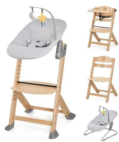 Kinderkraft Chaise Haute Bébé ENOCK, 3 en 1, avec Coussin en Bois Naturel, Évolutive, Réglage, Gris : Amazon.com.be: Bébé et Puériculture
