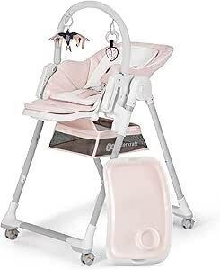 Kinderkraft LASTREE Chaise haute bébé evolutive de la naissance 2 en 1, Transat bébé avec Arche 2 jouets, Pliable, Position allongée, Réglable, Rose