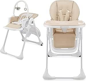 Kinderkraft TUMMIE Chaise haute 2 en 1, ergonomique, confortable, pliable, avec hauteur réglable et repose-pieds, plateau amovible, pour enfants, avec jouets, beige : Amazon.com.be: Bébé et Puériculture