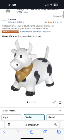 Ce produit est extrait d'une liste de cadeaux (Anniversaire, Noël, ...) déposée sur Kadolog. Kadolog permet de créer des listes de cadeaux (Anniversaire, Noël, ...) en toute liberté. Il est possible d'ajouter toutes vos envies cadeaux et de recevoir les dons directement sur votre compte. Avec les dons reçus, vous êtes alors libre d'aller acheter vos produits (comme ce 'Kindsgut Animal Sauteur pour Enfants, Couleurs discrètes et Modernes, détails soignés, Pompe à air Incluse, Chien : Amazon.fr: Jeux et Jouets ') où et quand vous le souhaitez.
