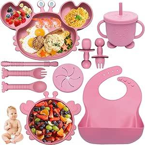 Kinyoda Lot de 10 bouillies de sevrage pour enfant, set de gruau antidérapant avec ventouse assiette bol tasse bavoir, ensemble de couverts pour enfants pour l'alimentation, sans BPA(rose) : Amazon.com.be: Bébé et Puériculture