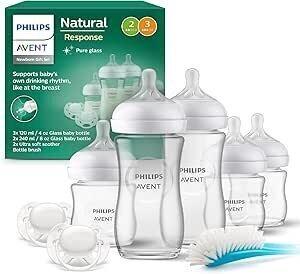 Philips Avent Kit biberons en verre Natural Response pour nouveau-né - 5 biberons, 2 sucettes Ultra Soft 0-6 mois, goupillon, sans BPA (modèle SCD879/11) : Amazon.fr: Bébé et Puériculture