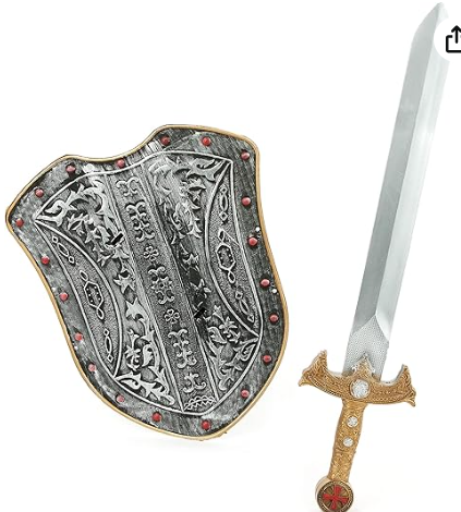 Ce produit est extrait d'une liste de cadeaux (Anniversaire, Noël, ...) déposée sur Kadolog. Kadolog permet de créer des listes de cadeaux (Anniversaire, Noël, ...) en toute liberté. Il est possible d'ajouter toutes vos envies cadeaux et de recevoir les dons directement sur votre compte. Avec les dons reçus, vous êtes alors libre d'aller acheter vos produits (comme ce 'Kit Bouclier et épée Chevalier médiéval ') où et quand vous le souhaitez.