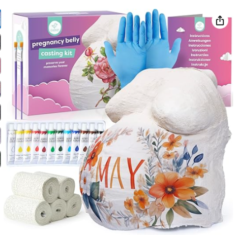 Server Busychuckle - Kit Complet Moulage Ventre Femme Enceinte avec Peintures, Gants & 2 Pinceaux - Décoration, Souvenir & Cadeau - Non Toxique & Facile à Utiliser