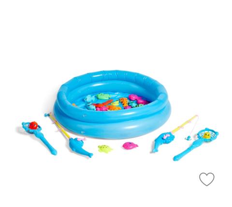 Jeu de pêche interactif avec mare gonflable et accessoires colorés pour encourager l'apprentissage tout en s'amusant.