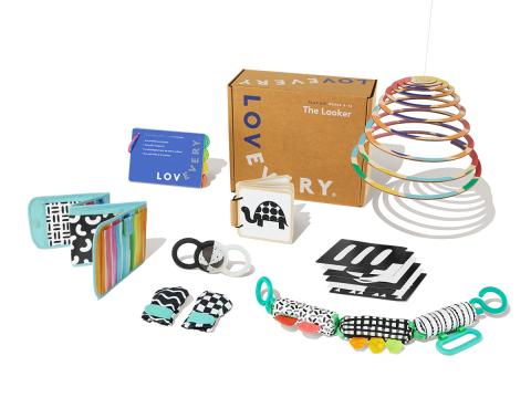 Cette box de jouets pour bébé de 0 à 3 mois a été conçu pour accompagner les 12 premières semaines de votre bébé. Votre nouveau-né prend peu à peu conscience du monde qui l’entoure grâce aux jouets sensoriels de la box Lovevery.