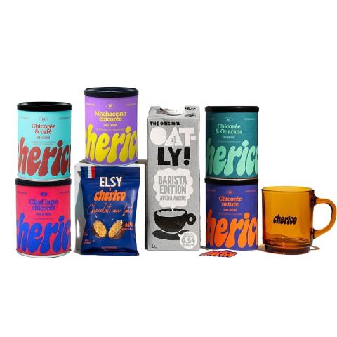 Tous nos essentiels en un seul coffret  :  1 pot chicorée nature (80g) : le vrai goût de la chicorée, notes de noisettes, de caramel le tout sans excitant. 1 pot chicorée et Café (80g) : le kick du café allié à la douceur et aux fibres de la chicorée. 1 pot mochaccino chicorée (120g) : la gourmandise du cacao au nature