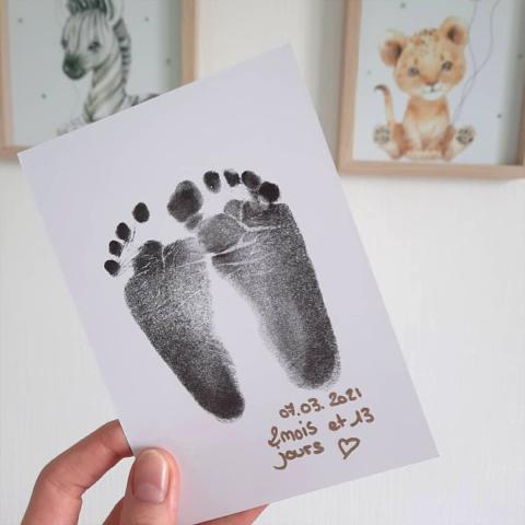 Un kit avec tout le matériel pour garder l’empreinte de son mini pied ou de sa mini main, sans que la peau de votre kids ne soit en contact direct avec l'encre.